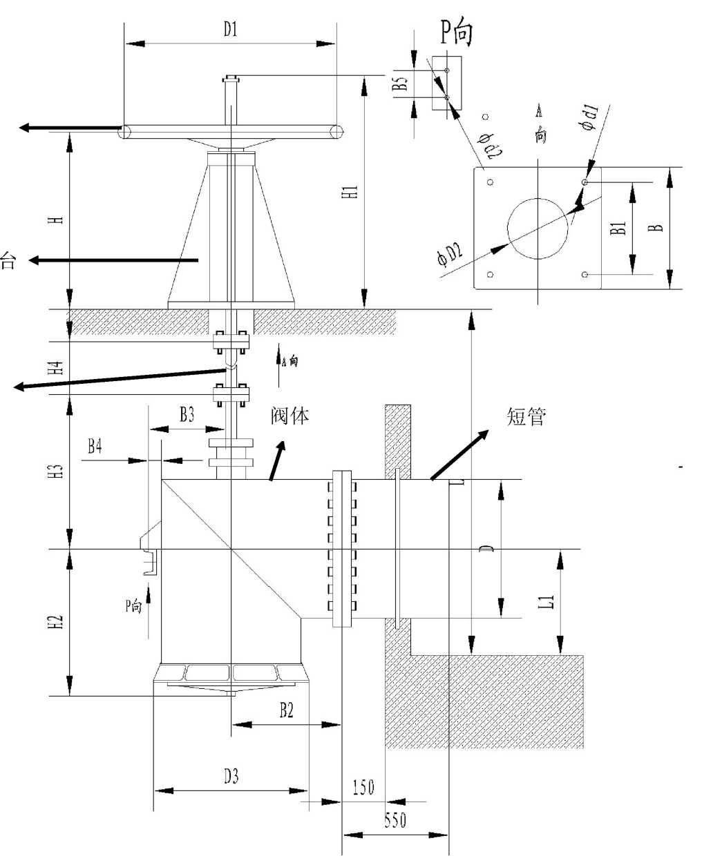 如:配水閘閥pz一5oo尺寸